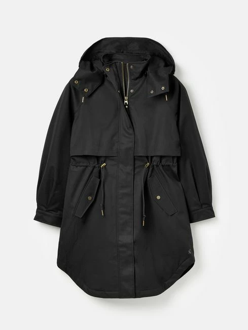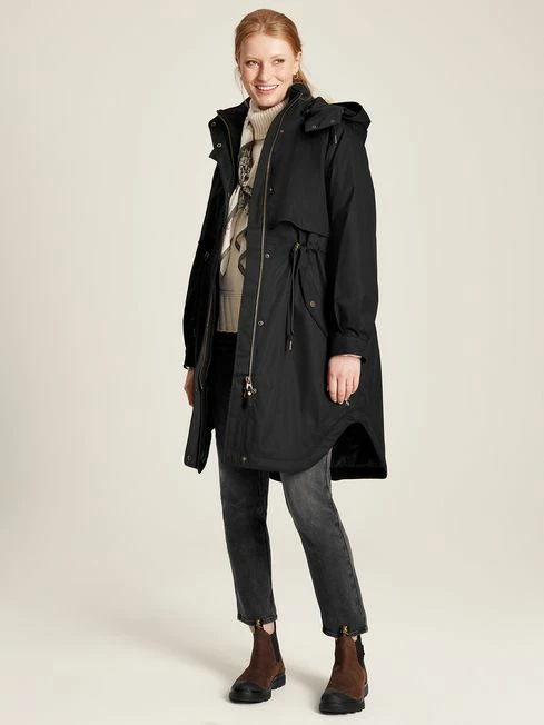 Forecast for rain? Don’t you worry. Our Langford coat will keep you dry in impeccable style. Designed to beat even the dreariest of downpours, the Langford is waterproof with taped seams, has a detachable hood with a storm peak, a storm flap that covers the chest and back, and a longline shape for extra coverage. The lining is quilted for a layer of huggable warmth. Waist adjusters mean you can cinch in your waist for a flattering fit, and the sleeves are pleated at the cuff with functional popper fastenings. The two popper-fastened side pockets are lined with soft fleece to keep your hands snug and warm. Of course, you’ll find a Joules hare embroidered to the hem. Waterproof with taped seams Cotton twill outer Zip and popper fastening Quilted lining Adjustable waist Fleece lined side pockets and single internal pocket Detachable hood with storm peak Storm flap Hare embroidery to the hem Length: 101cm (based on UK size 12)