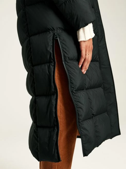 Black Showerproof Feather Down Long Coat