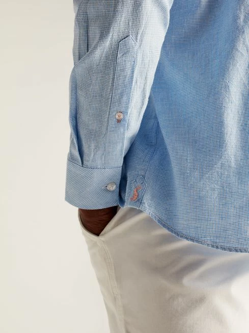 Crafted from a linen blend, this shirt is a lightweight style for the milder months. It has a classic fit through the body, button-down fastening, collar, button cuffs and a single patch pocket to the chest. The chambray trims and houndstooth pattern ensure it stands out from the other shirts in your wardrobe.