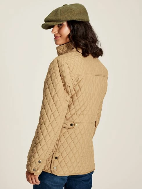 If you’re looking for a jacket that’s as much a statement style piece as it is a practical piece of outerwear, look no further than our Allendale quilted jacket. Crafted from hardwearing showerproof fabric that makes it perfect for light bursts of rain, our designers have added heaps of details that make this coat iconic. There’s a corduroy insert to the funnel neck, cleverly cut seams to flatter the waist and high shine popper details to the hips, cuffs, waist and back for movement and breathability. Inside, there’s a half-check lining for an extra touch of eye-catching charm, even when you’re not wearing it. Diamond quilting Showerproof Zip and popper fastening Funnel neck with a cord insert Half check lining High shine trims Back vents with poppers Two angled front pockets with cord trims Hare embroidery to front and Joules script to arm Length: 72cm (based on a UK size 12)