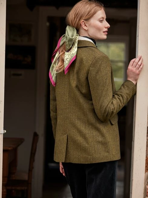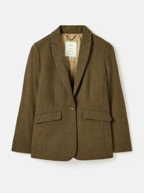 This wool blazer is inspired by our equestrian roots and is the perfect style to wear if you’re attending an event or show. It’s fitted with darts, has a lapel collar and a single faux horn button fastening for a polished look. A premium piece deserves quality details, so there’s a full printed lining, a brass hanging loop, button cuffs and jet pockets, as well as an additional internal pocket. Team it with a pair of jodhpurs and a frilled blouse for formal events, or layer it over dresses for everyday wear. Wool blend Fitted shape with darts Single faux horn button fastening and button cuffs Lapel collar Equestrian-inspired printed lining Contrast undercollar Jet pockets Functional envelope internal pocket Brass hanging loop
