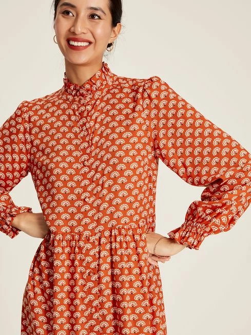 When the occasion calls for a touch of sophistication, our Josie dress is a vintage-inspired wardrobe wonder that can be styled for everything from a daytime outing, to an evening soirée. It has darling details that make it extra special: just note the gathers to the shoulders and cuffs as well as the dainty frills to the neckline and waist seam. The front opens in a V-shape, with three fabric-covered buttons. The midi-length skirt has soft gathers to the waist, giving it a beautiful flowing silhouette that you just can t help twirling in. Layer it under a chunky knit and pair with boots for an everyday look, or opt for classic heels for a more formal affair. Midi length Frilled neck and waist seam Open V-neck with button fastening Gathered shoulders and cuffs Gathered skirt Elasticated waist and cuffs Double turned hem Length: 130cm (based on UK size 12)