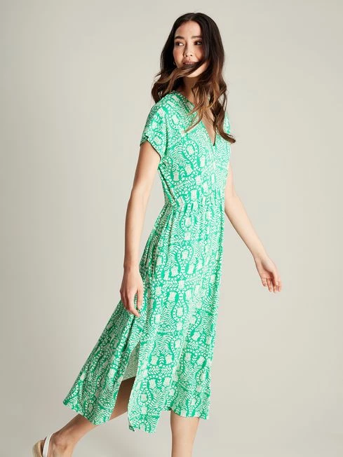Our Nia jersey beach dress is a sunshine essential. It’s got a midaxi length, an a-line shape and a flattering V-Neck. The hand-drawn print is perfect for the summer while the pockets, side splits and dropped armholes offer a comfortable, relaxed feel.