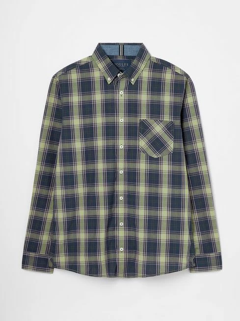 A checked shirt is one of those can’t-go-wrong classics that every gent’s wardrobe requires. The Goodridge is cut from a crisp cotton poplin and is adorned in a check that sits back with the autumn and winter seasons. It has an unfussy classic fit, a button-down fastening with button-down collar and cuffs and a patch pocket to the chest. For a distinctive finish, it has chambray trims and hidden embroidery to the cuff. Cotton poplin Classic fit Button down fastening Button down collar Single patch pocket to the chest Button down cuffs Chambray trims Hidden embroidery to the cuff Joules embroidered hare to the hem