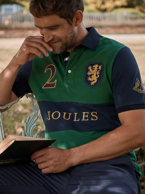 The ultimate in casual dressing, the polo shirt is something every man should have in their wardrobe. Extremely versatile, the lightweight and breathable cotton pique fabric means you can wear it for playing polo or sporting it for the everyday. This one has an embroidered Joules Polo Club badge to the chest along with a player position number ‘3’ to the sleeve. Additional details include the Joules script to the front, a contrasting colour sash and a twill collar stand with polo mallet embroidery. The heritage burgundy and navy colour palette used makes it easy to wear with almost anything. Cotton pique Classic fit Short sleeves Button placket Collar with embroidered twill collar stand| Joules polo club badge and number to the sleeve Contrasting sash to the front with embroidered ‘Joules’ Side vents