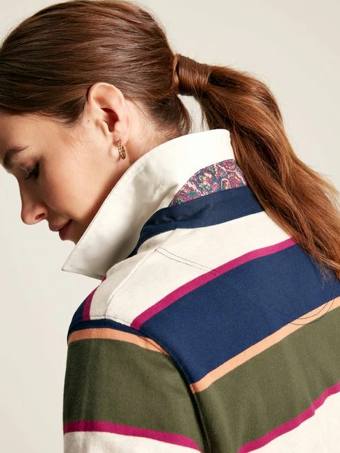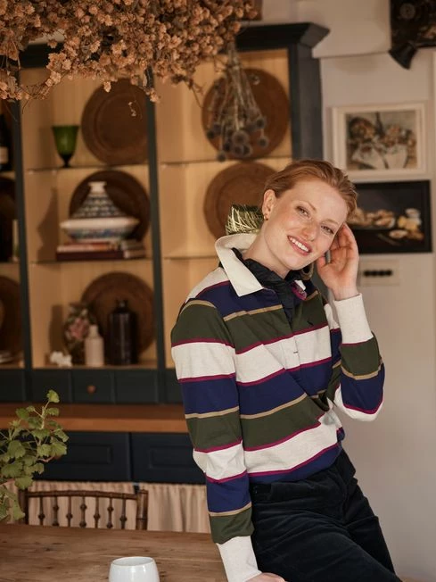 Try as you might, we don’t think you’ll find a better rugby shirt than this. Crafted from our finest heavyweight jersey that’s perfect for the colder months ahead, this long sleeved shirt features dropped shoulders, deep cuffs, a stylish woven stripe and contrasting printed details to the inside neck, outer collar and inner back hem. The front fastens with concealed buttons and has an embroidered Joules hare to the chest. Cotton Dropped shoulders Concealed button placket Deep ribbed cuffs Dropped hem Embroidered Joules hare to the chest Contrasting print to inside neck, undercollar and internal back hem