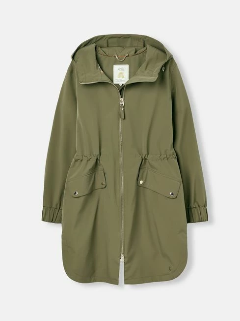 Whether it’s a little drizzle or a great British deluge, the Elmfield coat will keep you dry in all types of rain. For that, you can thank the fully taped seams that stop water from seeping through and the waterproof outer fabric that has been tried and tested. The hood with bungee cord toggles offers extra shelter from the rain and the relaxed fit allows for easy layering underneath. An adjustable waist with internal toggles ensures a fit that is unique to you, the curved hem adds a flattering touch and the two-way zip fastening has a high-shine finish. There are two angled side pockets with popper fastenings (perfect for stashing dog treats and other essentials) and elasticated cuffs for comfort. Have a gander inside and you’ll discover a half-checked lining as a nod to our heritage. It’s finished with a Joules screen print hare to the hem and Joules script logo to the left cuff (as worn). Relaxed fit Waterproof with fully taped seams High-shine two-way zip fastening Adjustable waist with internal toggles Side pockets with popper fastenings Curved hem with Joules hare screen print Hood with bungee cord toggles Half checked lining Elasticated cuffs Length: 98cm (based on UK size 12)