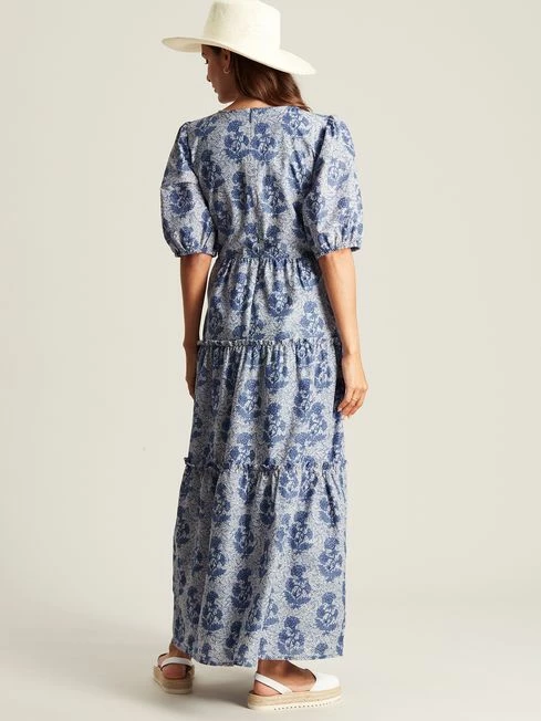 A statement printed dress will elevate your look in an instant. Our Darcy dress features a new print for the season in a beautiful colour palette. Its maxi length and short sleeves make it perfect for the summer months, but when the temperatures turn, layer a knit over it to extend its versatility. It has a tiered skirt with frill detailing, a flattering V-neck, pockets in the side seams and a concealed zip fastening to the back.