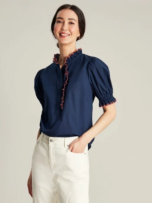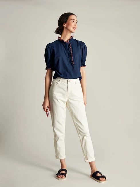 A blouse is an effective way to elevate your everyday look. Simply pair them with your favourite pair of jeans and pumps. Our Olivia blouse has scalloped detailing to the cuffs, placket and neckline which creates an effortlessly pretty finish. It has short voluminous sleeves perfect for the warmer weather and a button placket giving you multiple ways to style it. A new favourite? It just might be!
