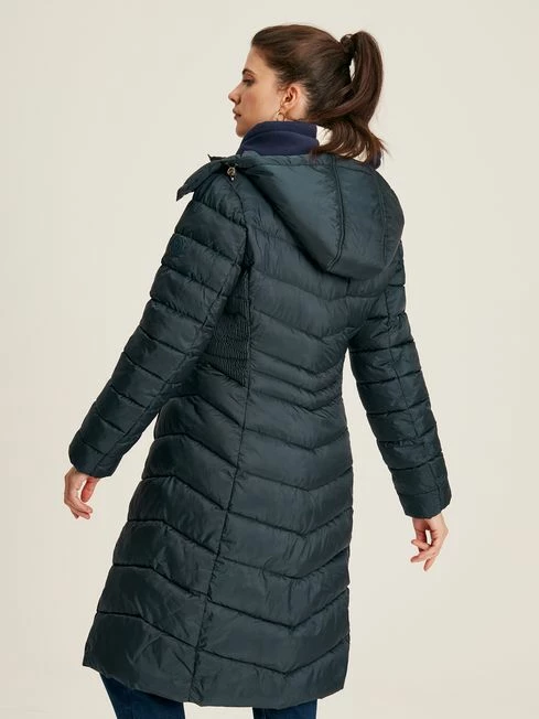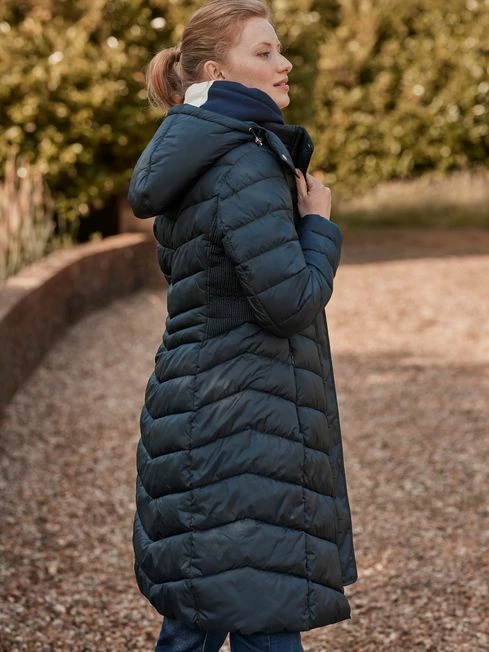 If you’re looking for a trustworthy new coat that will welcome the cold weather in style, we have, quite literally, got you covered. The Pembury is cut to a longline length for all-over warmth. Our designers have cleverly added shirred side panels, slimmer chevron baffles to the waist and curved seams to the centre to balance out its shape for a more flattering fit without compromising on cosiness. The fabric has a soft-to-touch pearlised finish that’s also showerproof, making it perfect for light bursts of rain, and the hood is detachable so you can decide your level of protection before you head out. The high neck and chin guard with popper fastenings also add an additional touch of coverage to snuggle into when the wind starts to whistle on through. You’ll find two invisible zip pockets to each side. Longline Showerproof Padded with chevron quilting and variegated baffles to the waist Shirred side panels Detachable hood with zip and internal waist adjusters Pearlised finish Printed lining Zip and popper fastening Two hidden zip side pockets Length: 103cm (based on UK size 12)