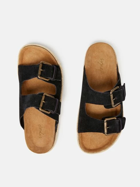 Navy Blue Suede Espadrille Buckle Sliders