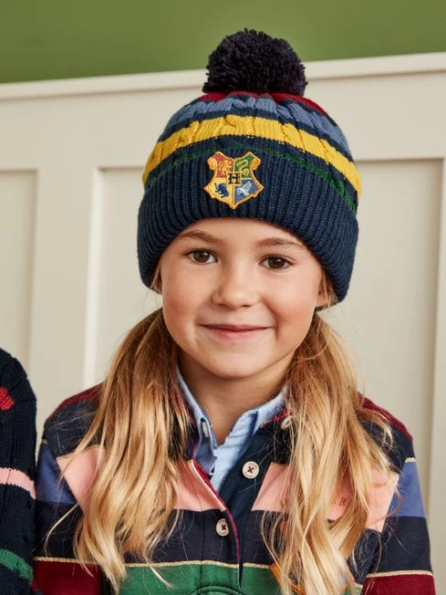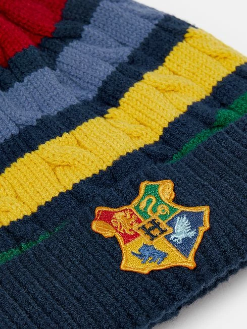 Whether their imaginations take them on a snowy trip to Hogsmeade™, or pitchside at a Quidditch™ tournament, this bobblehat will make them feel as if they’re part of the magic. Each Hogwarts™ house is represented in stripes, so they can champion anyone they like and it features a Hogwarts School Crest™ to the turn back cuff. The heavyweight cable knit and fleece lining will ensure they stay wonderfully warm and the pom pom on top is detachable via a popper. If you want to score extra points, there’s a matching scarf – just search for the George Weasley scarf . Part of our official Harry Potter™ collection|Heavyweight cable knit Fleece lining Ribbed turnback cuff with Hogwarts School Crest™ Striped in Hogwarts™ house colours Detachable pom pom Matching scarf available WIZARDING WORLD and all related trademarks, characters, names and indicia © & ™ Warner Bros. Entertainment Inc. Publishing Rights © JKR. (s23)