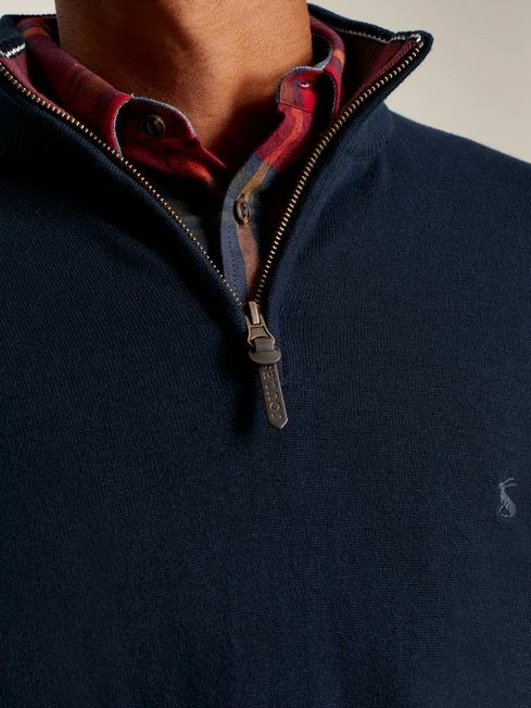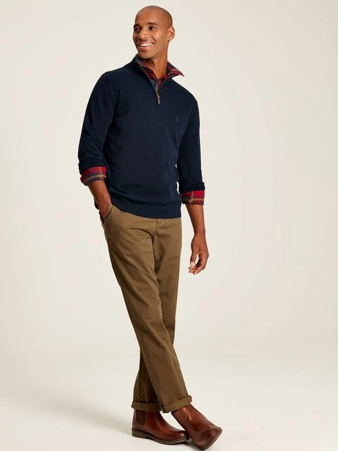 One of our best-loved men’s styles, this quarter zip jumper is crafted from soft yet substantial cotton and is comfy enough for layering and yet dapper enough to wear on its own. The contrast back-neck is ribbed, as are the hem and the cuffs. We recommend pulling it on over a shirt for ultimate style, warmth and comfort. Perfect for those smart-casual occasions that can be tricky to dress for. 100% cotton Classic fit Funnel neck with quarter zip fastening Faux leather zip pull Ribbed hem, neck and cuffs Contrast back neck tape