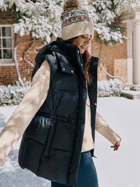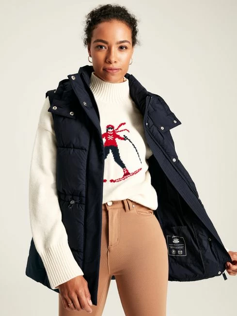 A gilet is a can’t-go-wrong layer for the colder months of the year when there’s a distinctive nip in the air. The Witham showerproof gilet has a contemporary look with large padded and filled baffles, combined with a loveable practicality you’d expect from a gilet. The adjustable waist with bungee toggles allows you to cinch it in for a more flattering fit, while a detachable hood means you can add it or remove it depending on the skies. For a sleek and clean look the two-way zip and popper fastenings are concealed, so too are the poppers on the pockets. It’s finished with a Joules hare embroidered to the hem. Showerproof Large baffles padded and filled with warm wadding Funnel neck Adjustable waist with bungee cord toggles Detachable hood Concealed two-way zip and popper fastening Side pockets with concealed popper fastenings Joules embroidered hare to the hem