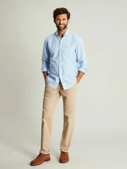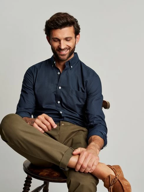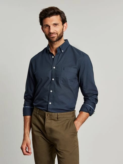 This shirt is a classic that every man should have in his wardrobe. Built from soft yet sturdy cotton and with enough shape and structure to help you feel as dapper as it looks. Button it up or wear it open with a T-Shirt. The choice is yours. The chambray trims add detail where it’s least expected and are a constant reminder of the quality. Cotton Classic fit Full button fastening Button-down collar Chest pocket Chambray trims Button cuffs with contrast stitching Back hanging loop detail Joules hare embroidery to pocket