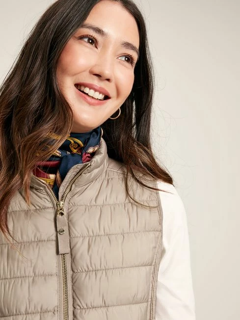 A gilet is one of those wardrobe wonders that you’ll call on time and time again. So if you’re looking for your first one, or to update your current, our new Whitlow is just the ticket. Feel-good features include chevron quilting, elasticated side panels for a flattering shape and beautiful top stitch detailing throughout. Its buttery-soft outer is showerproof making it a wonder in light bursts of rain. There’s a full zip fastening with a zip guard, two side pockets with concealed zips for a sleek look and a curved hem. We’ve made it in an easy-to-style colour and finished it with a Joules hare to the hem too. Showerproof Padded Chevron quilting Elasticated side panels for a flattering fit Zip fastening Hand-drawn printed lining Concealed zip pockets Buttery-soft pearlised finish Joules embroidered hare to the hem