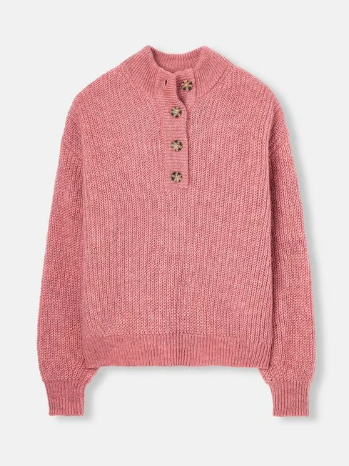With the Kayleigh jumper in your wardrobe you’ll be ready to welcome autumn and winter with open arms. The half cardigan rib gives it a contemporary chunky look and the dropped shoulders creates a relaxed fit. The placket (featuring plush faux horn buttons) offers versatile styling – wear it open with a luxurious layer underneath, or button it up and snuggle in. Wool blend Half cardigan stitch for all over ribbed effect Dropped shoulders Ribbed hem and cuffs Funnel neck Faux horn buttons