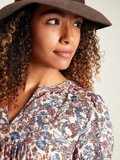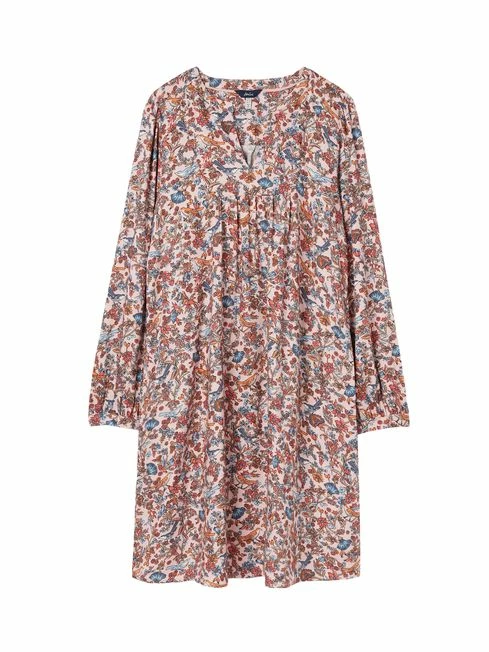 Carrying an intricately hand-drawn print, the Savannah dress will be your favourite piece by far. Birds perch amongst blooms in this high-coverage print which uses an opulent colour palette sure to elevate your wardrobe. It sits on the knee, and has long gathered sleeves, a notch neck and side pockets. Cold weather? No problem. Reach for a cosy knit and leather boots for a layered-up look. Viscose Long sleeves with gathered sleeve head Notch neck Sits on the knee Pockets in the side seams Hand-drawn print Length: 100cm (based on UK size 12)