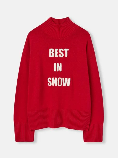 Designed to add a touch of personality to your winter wardrobe, the Belle jumper is a layer you’ll reach for time and time again. It features a tufted ‘Best in Snow’ applique to the front which will bring joy to the day and comes in red which suits the season. It feels as good to wear as it looks with a relaxed fit making room for layers, dropped shoulders and a high neck for snuggling into. If you’re hitting the snowy slopes this winter, this will make a great layer for après ski! Cotton and wool blend Relaxed fit Dropped shoulders ‘Best in Snow’ tufted applique High neck Ribbed hem and cuffs