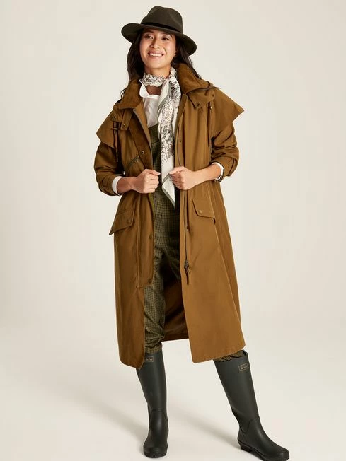 Finding your next go-to jacket is a decision that shouldn’t be taken lightly, and we craft all of our outerwear with high standards in mind. Our new Canter jacket is no exception, designed with an abundance of practical features and stylish details. Its long length makes it perfect for keeping you covered on blustery days, with a popper-fastened split to the back and dual zip and popper fastening to the front. The dry wax fabric not only gives this jacket its equestrian-inspired look, but is shower resistant too, which makes it perfect for light bursts of rain, and the exaggerated cape and detachable hood add another touch of country flair. You’ll find a half check lining inside, as well as a drawstring waist for a flattering fit and a handy internal pocket. There are also two angled pockets to the front with popper fastenings and corduroy trims. Shower resistant dry wax Zip and popper fastening Half check lining Exaggerated cape and detachable hood Internal drawstring waist Back split with poppers Corduroy trims Two front pockets and one internal pocket Comes with a metal hare pin (packaged separately) Length: 116cm (based on UK size 12)