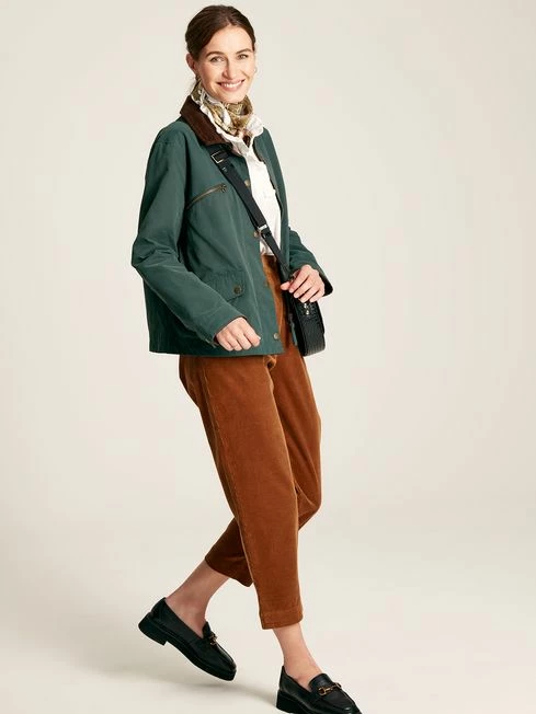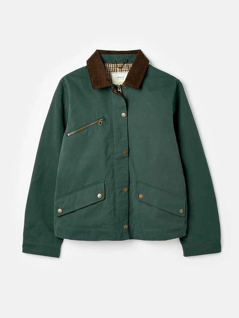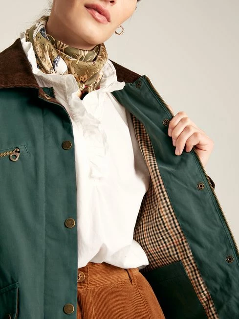 Elevate your outdoor style this season with our heritage-inspired Belfield dry wax jacket. Cut to waist length with an a-line fit, it features a chunky cord collar, slightly dropped shoulders and antique brass-style popper fastenings to the front. We’ve added two popper flap pockets to the front, as well as an additional diagonal zip pocket to the chest, and we’ve even hidden an internal pocket to the check lining too. The dry wax finish is shower-resistant, which means this jacket can withstand light bursts of rain if you get caught in one (which is always likely in Britain). Dry wax Zip and popper fastening Cord collar Chest zip pocket and two flap pockets with poppers Bespoke check lining Cropped to the waist A-line shape Shower resistant Internal pocket Metal hare pin (packaged separately) Length: 64cm (based on UK size 12)