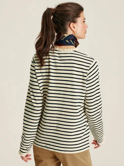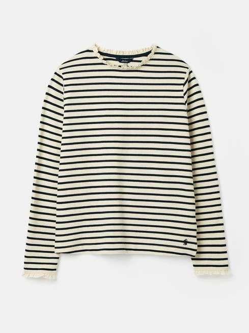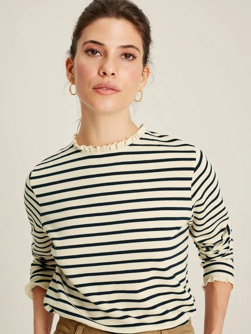 The Daisy top is a simply splendid style to have. It’s returned for its second season in British wardrobes, and has been updated with new stripes to choose from. The slim fit through the body and sleeves makes it great for layering under sweatshirts and knits, while the frilled neck and cuffs add a feminine touch. It’s finished with a charming Joules embroidered hare to the hem as a mark of your most favourite brand. Cotton Slim fit Long sleeves Frilled neck and cuffs Striped Joules embroidered hare to the hem