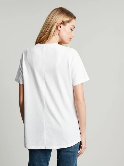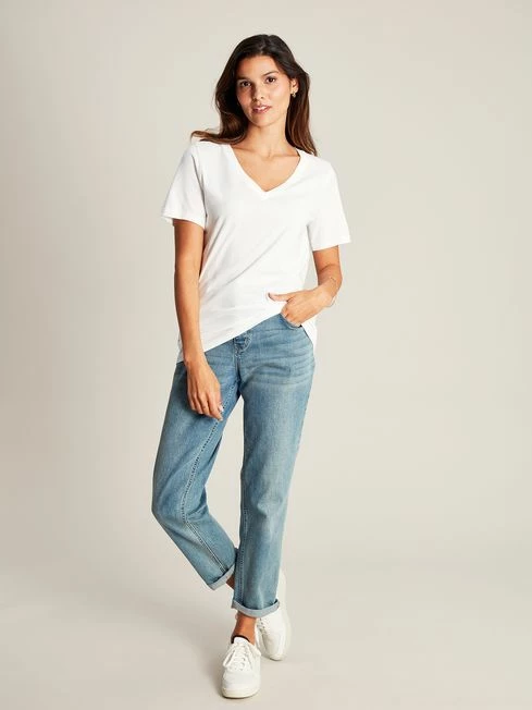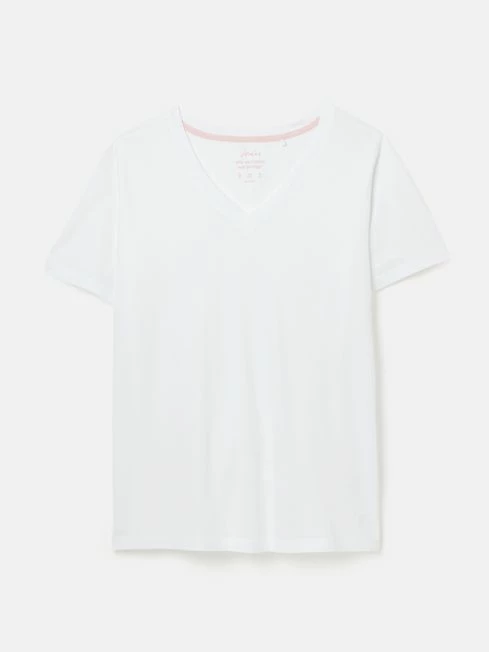 Our new Emily Jersey T-shirt will fit into your everyday wardrobe seamlessly. Its short sleeves and flattering V-neck make it easy to layer up when needed. The dropped, curved hem keeps it looking great whether worn untucked or tucked in. It’s finished with a tonal Joules embroidered hare to the hem.
