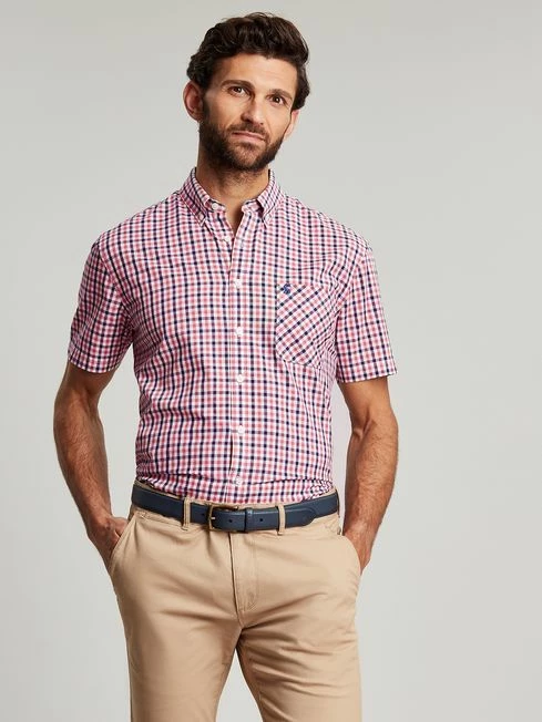 Short sleeve shirts are a summer staple whether it’s for keeping cool (but smart) in the office or wearing unbuttoned over a T-Shirt at the weekend. Our Wilson shirt has a classic fit, is crafted from a lightweight woven fabric, and has a full button-down fastening and a single patch pocket to the chest. It comes in a traditional gingham that will pair perfectly with anything from chinos to jeans.
